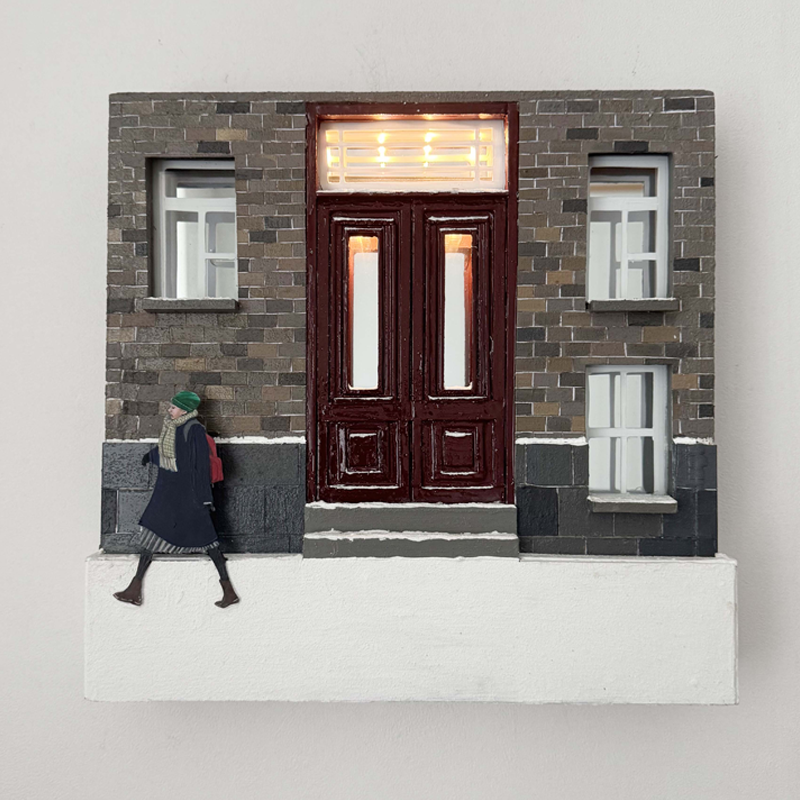 The gaze of the guest (客) and the scene-making of existence begin with human recognition as a 'being destined to leave'. The experience of not being able to settle in one place and crossing the boundaries of space from childhood led to a lack of 'home' and a strong attachment at the same time. The sense is imprinted in one scene. Like the memory of counting the lit windows of the apartment opposite before returning home after playing until the sun sets in the playground on a winter day. I used to look at the shining shadow in the window and imagine the warmth of a strange house. This experience does not just remain in reminiscence, but becomes the root of the space, gaze, and structure in my work today. This gaze soon expands to the ontological position of 'the guest (the 客). Modern people live more and more like strangers. I also stay for a while and soon look at a place I have not reached as a leaving being, and reflect on my place and identity. The composition through window, light, and reflection works as a symbolic device that connects time, existence, and inside and outside, not a simple representation tool. In particular, the first motivation to use the mirror was the problem consciousness of 'time'. I tried to construct a picture as a scene containing the passage of time—like a long take of a movie—not as a capture of a single moment. The mirror functions not as a tool to reflect a fixed image, but as a medium that captures the passage of time and the variation of senses. Rather than stopping the screen, this device allows the screen to flow constantly, and the landscape continues to vary as the gaze moves. In this way, the work does not become a fixed state, but a continuity of scenes that reflect the finiteness of time and affection for the surroundings. Nevertheless, formally, it persistently deals with the contradictory orientation of 'planarity within three-dimensionality'. Why are you obsessed with the plane while making it three-dimensional? This is a way of spatially unraveling the structure of perception beyond visual expression. The plane is the basic visual language and a kind of 'frame' for recognizing the world. However, this frame opens the world and at the same time traps the gaze in a frame. I borrow the form of a carry-in object or three-dimensional object to break the structure of this repressed perception, but try to return to the plane again in it. In that repetitive tension, I visually metaphor the state of human existence at the boundary. So, it is based on painting, but not fixing it on a traditional plane. Instead, the 'plane' is stacked using non-material elements such as mirrors, acrylic, formax, and light. This is not a simple material experiment, but a decision starting from the conceptual question that "the limitation of viewing is the condition of the plane." The work is installed like a relief on the wall, but it transforms into a completely different scene even when the audience moves one step. This change shakes the fixed perception of 'what is seen' and dismantles the classical frame of one viewpoint, one front, and one lighting that has been premised on the painting. The audience no longer stays in the place where they appreciate it with a set gaze, but changes into an active being that composes and dismantles the scene. In that way, I shake the way I see itself and suggest a new layer of sensation in the gap. The mirror is not simply a tool for reflecting light, but acts as a medium between existence and absence, the past and present, the visible and the invisible me. Acrylic and formax divide the world in layers between transparency and opacity, creating a double structure. Formative materials are also accepted as pictorial gestures to me. After all, my relief is 'stacked drawing' and is an extension of the 'action of drawing'. It is clear why the work does not proceed to a complete three-dimensional form. By limiting my view, I want to reduce even the 'infinite three-dimensional' to one 'plane'. And within that limited field of view, the audience can reach a deeper and infinite inner dimension. This is because this limitation is not the limit of the sense, but the entrance to the perception of existence. In this way, my work starts from personal memory and explores the place of existence and the nature of the act of seeing. The gaze that imagined an unfamiliar warmth while looking at the lit window on a dark night now makes me look back on myself in the structure of reflection, projection, limitation, and overlap. We are all 'guests' of a space and stand at the boundary between life and perception as those who exist in it at the same time as we stare at the scene. Through this, I would like to remind the viewer that they are ultimately 'guests' (客) who cannot stay in this world.