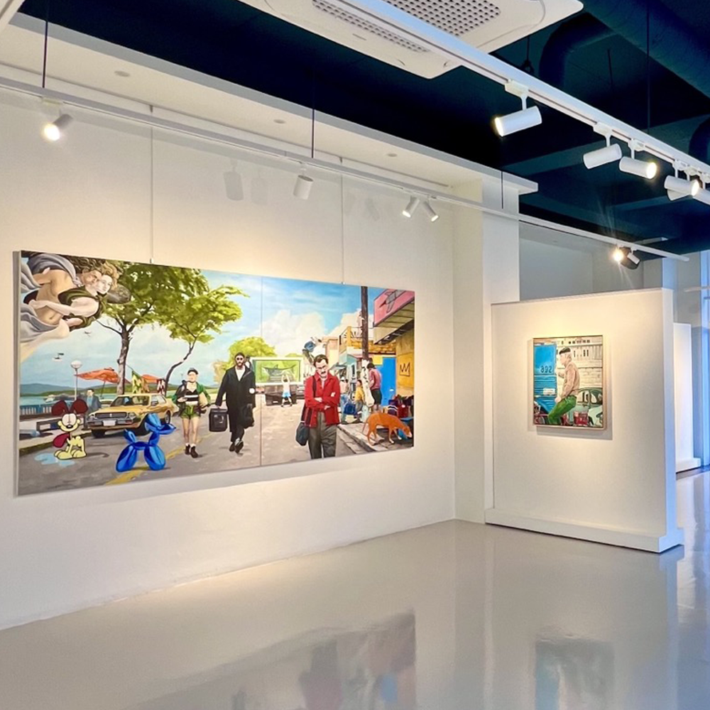 The reason why the author ‘creates a strange order among the mixture’ by mixing heterogeneous characters is because of the question of the essence that our visual experiences are not all the same. The unique sense of shaking up humorous situations in an unfamiliar way is also in touch with the spirit of painters who emphasized surrealism, including Duchamp, Van Gogh, Dali, Warhol, and Magritte. The newly presented works encounter an ‘allegory of representation’ where questions create questions by throwing ‘visual truth (depth of time)’ on top of a satirical sense. Because of the overlap of time, intuitive storytelling that mixes homage to famous paintings, movies, and painters is summarized as a method of one-pointed perspective that expresses the essence in terms of content, but directs towards the artist whom the artist pays homage to in form. The method of composing the screen according to the level of time pursues the essence of representation that modern art tried to lay down, but because it implements expressionism through sensory collage, it results in ‘figurative expressionism’.